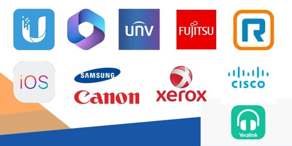 We expertly support leading technology brands, including Cisco, Microsoft, Apple, Samsung, UNV, RingCentral, Ubiquiti, Canon, Fujitsu, Xerox, and Yealink, ensuring your systems operate seamlessly and productively. Our deep expertise guarantees optimal performance and integrated solutions for your business success.